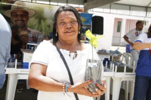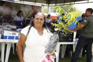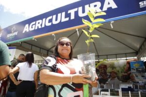 Da mesma forma, Maria Edileuza Santos também aproveitou o dia de ações em sua cidade para usufruir de vários serviços. “Vi que estavam entregando esses pés de frutas e consegui uma muda de jambo. Vou levar para plantar no terreno de meu tio. Ele faleceu recentemente e deixou essa área para cuidarmos, onde já tem outros pés de frutas”, declarou a agente de limpeza.